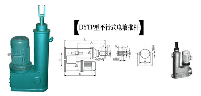 DYTP型平行式電液推桿是一種機(jī)、電、液、儀一體化的執(zhí)行機(jī)構(gòu),它以液壓缸為主體,電動(dòng)機(jī)、油箱、油泵、濾油器、液壓控制閥組合的總成。電動(dòng)機(jī)、油泵、液壓控制閥和液壓缸可裝在同一軸線上,也可按需要裝置在不同軸上,中間有油箱和安裝支座,只需接通電動(dòng)機(jī)的控制電源,即可使活塞桿位移往復(fù)運(yùn)動(dòng)。活塞桿的伸縮由電動(dòng)機(jī)的正反向旋轉(zhuǎn)控制。